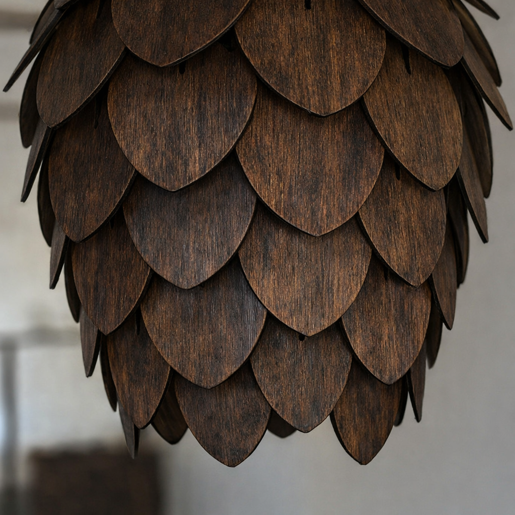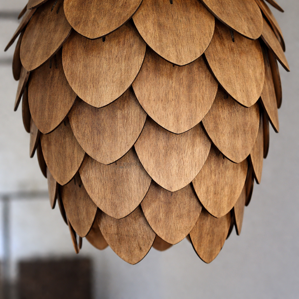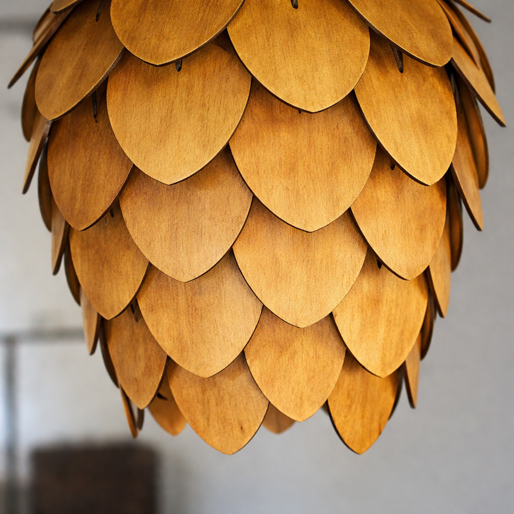 Träets naturliga ådring gör varje lampa unik – ett levande hantverk där ingen är den andra lik.