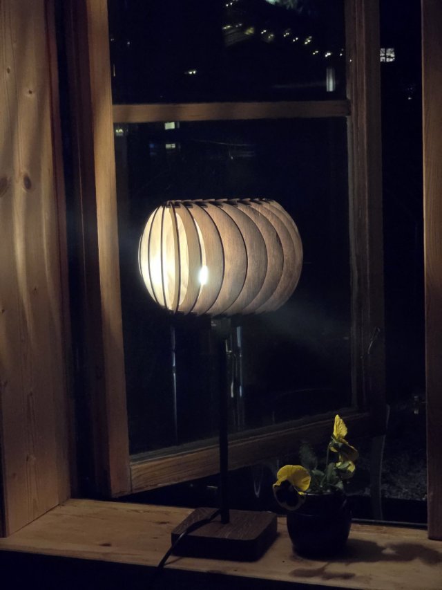 Träets ljusa ton ger lampan en varm och välkomnande känsla, medan mörkare varianter skapar ett mer dämpat och romantiskt sken.