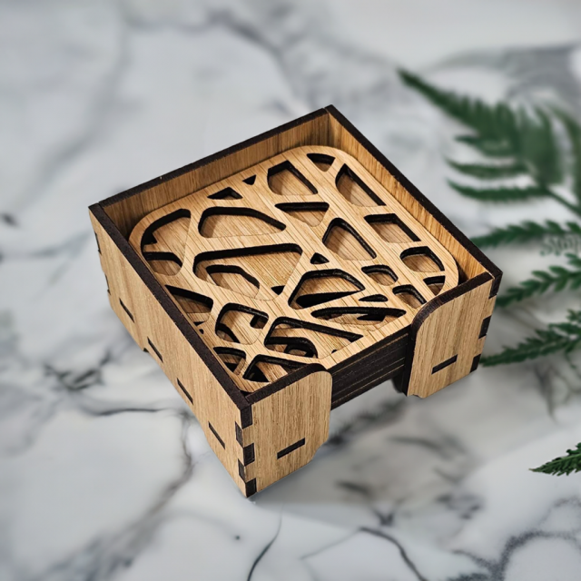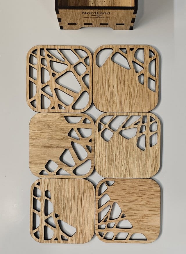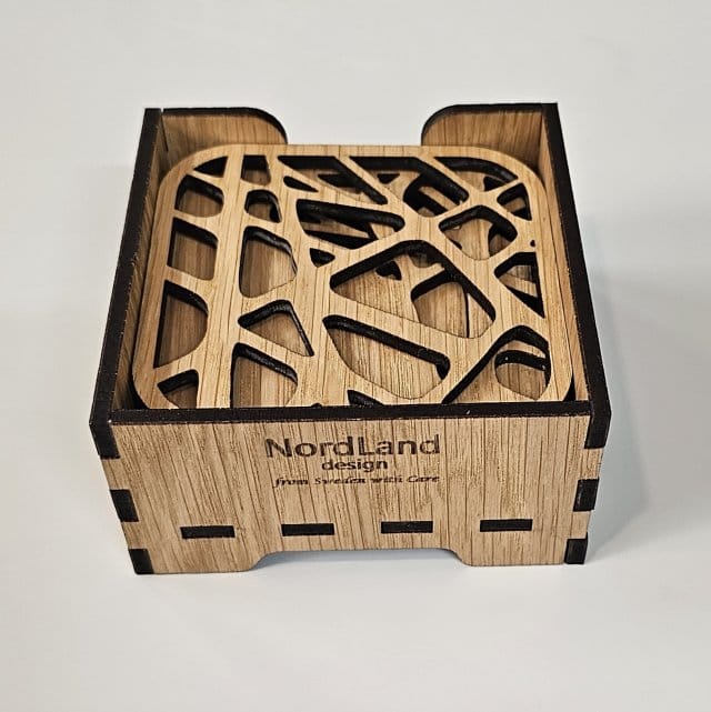 Glasunderlägg i ek med stenmönster från Nordland Design är mer än bara praktiska – de är små konstverk i trä. En elegant detalj som tillför värme, karaktär och nordisk harmoni till varje dukning.