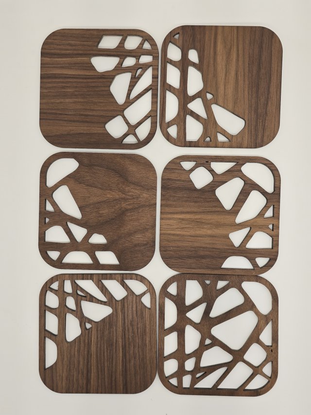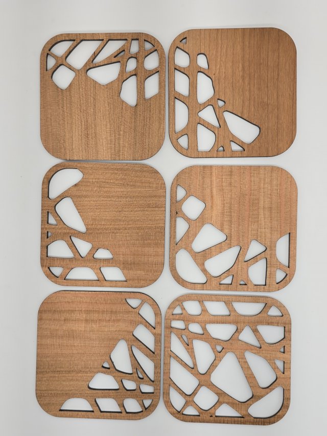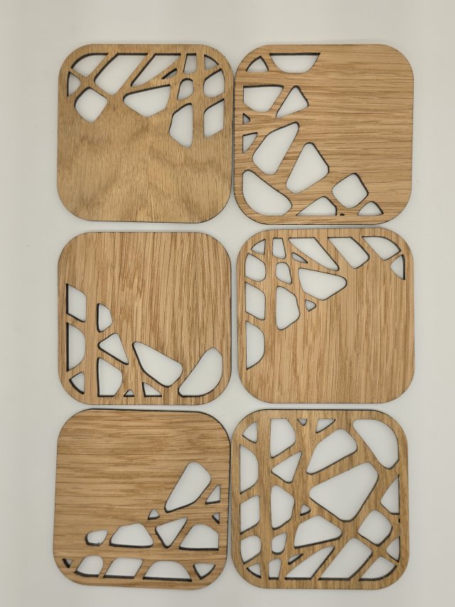 Glasunderlägg i Ek, Körsbär & Valnöt med stenmönster