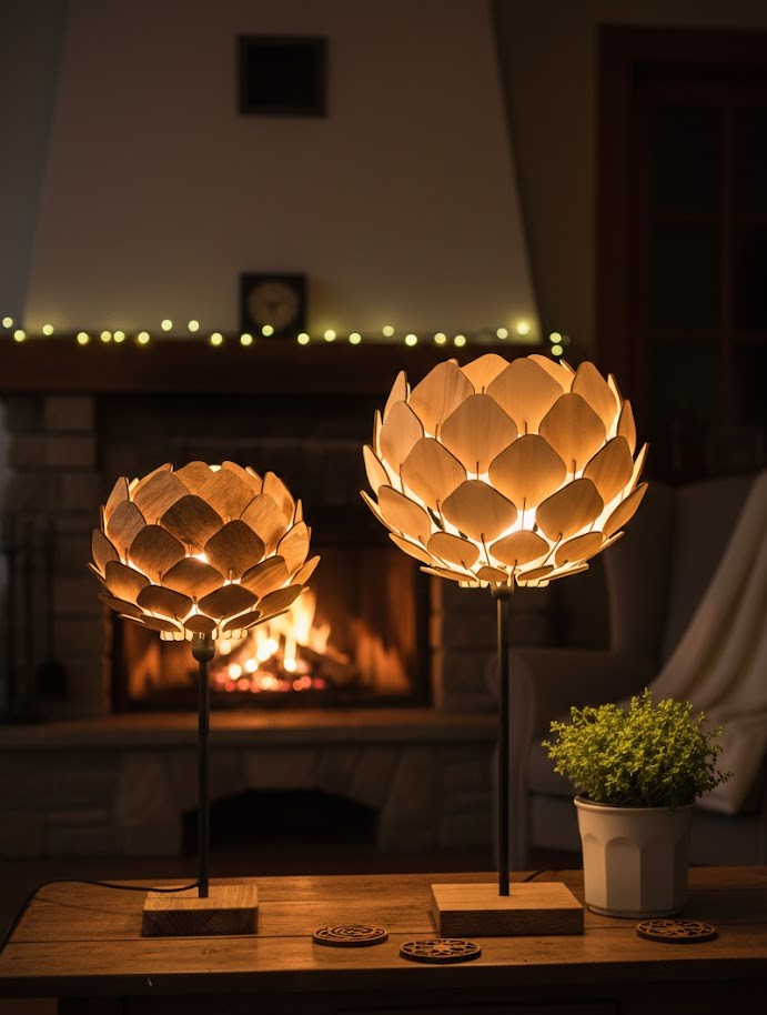 Träets ljusa ton ger lampan en varm och inbjudande känsla, medan mörkare nyanser skapar ett mer romantiskt och elegant sken.