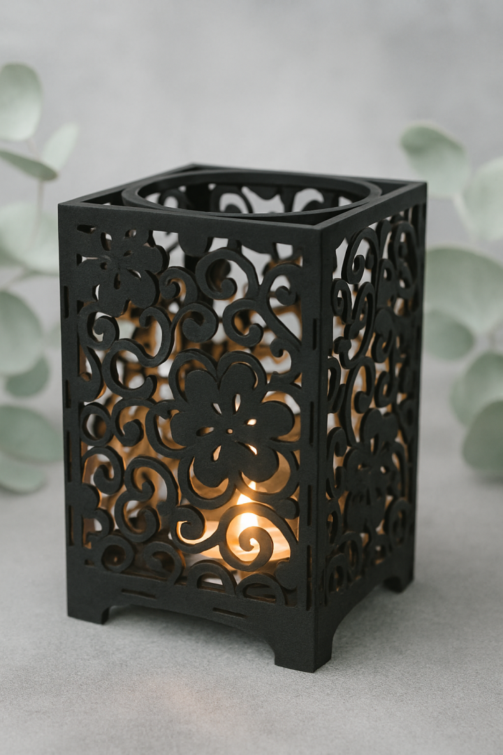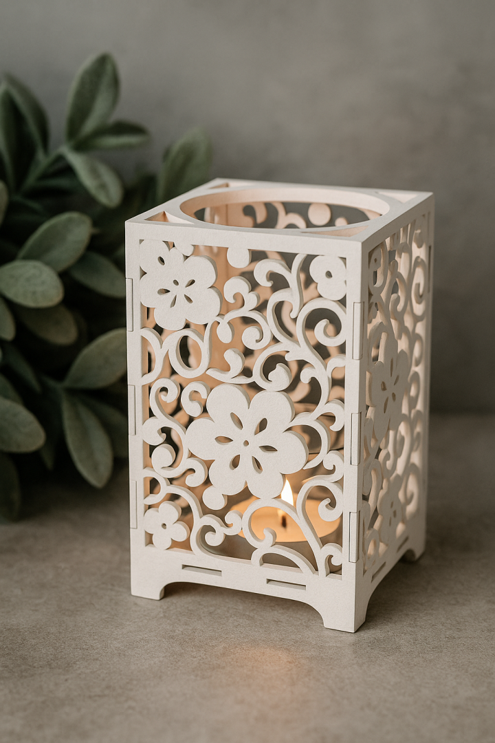 Ljuslyktan Blom är en hantverksgjord ljuslykta i trä inspirerad av blommornas eleganta former. De mjuka, utskurna linjerna skapar ett vackert ljusspel som påminner om blomblad i rörelse när ljuset tänds.