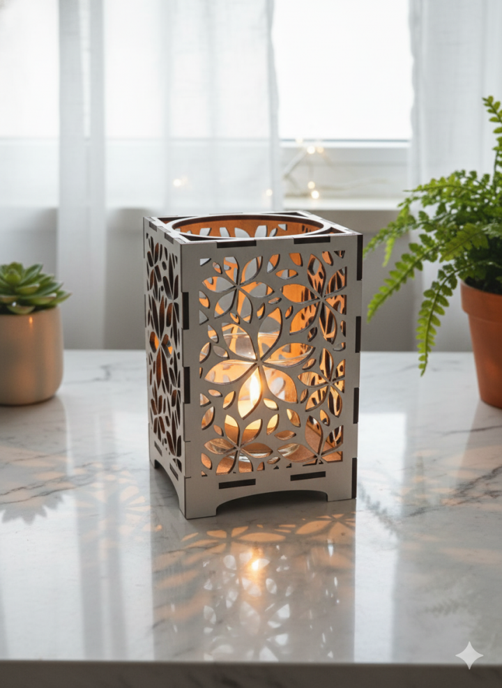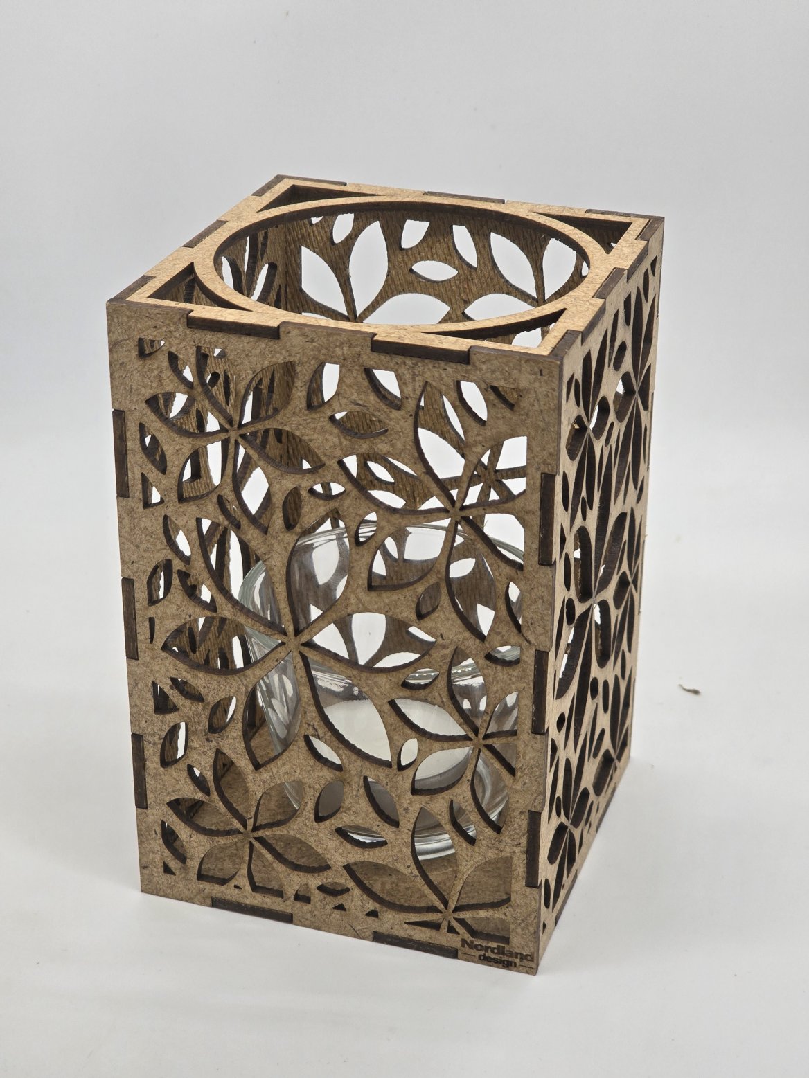 Ljuslyktan Lily – Handgjord ljuslykta i trämaterial.