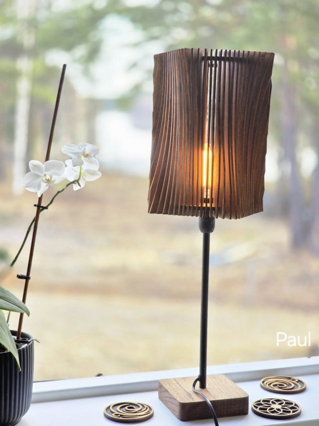 Bordslampa Paul i trä är mer än bara belysning – den är ett uttryck för nordiskt hantverk och naturlig design.